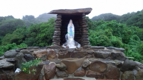 6月の始め頃から土台となる石が組まれ、マリア像を置く石の囲いもイイ感じに出来上がりました![]()