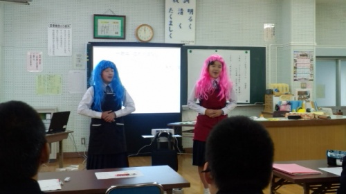 さて、学習発表会・第2部は場所を図書室に移して、各学年による総合的な学習の時間の発表がありました![]()