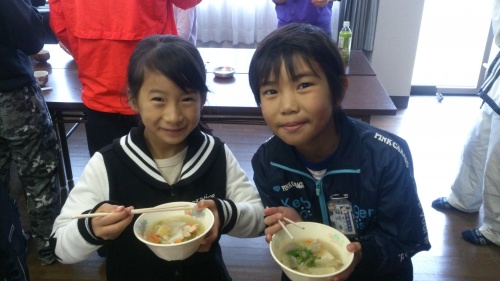 保護者のお母さん達が準備してくれた豚汁とおにぎり![]()