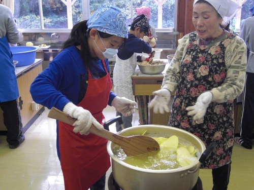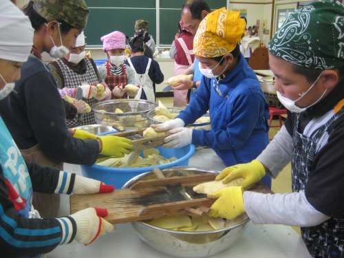 先月の下旬、小学校では全校生徒による、かんころ作りがありました。