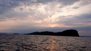 薄いピンクに染まった空と黒島天主堂がなんだか素敵で・・・