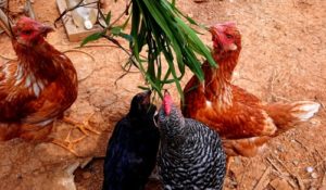 前はよくキャベツや胡瓜など調理で使った野菜の切りくずを鶏たちにあげてましたが、今は野菜不足なので代わりに雑草を・・・
