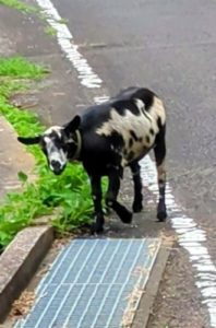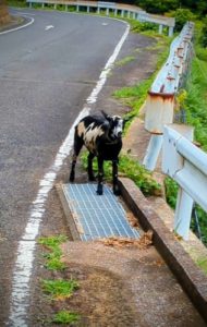 「白黒のヤギさんが道に出とるばい!!」