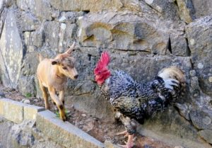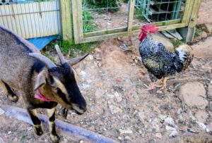 途中、黒烏骨鶏の雌鶏ペコも放牧場生活を一緒に