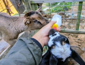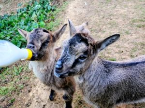 今では私の姿を発見すると駆け寄りミルクを催促する子ヤギたち